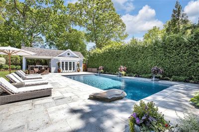 Nestled in the quaint seaside hamlet of New Suffolk, this unique & beautifully landscaped L-shaped compound includes and elegant 3 Bedroom 3 Bath Main House right out of Coastal Living, plus a charming renovated 2-3 bedroom 1 Bath cedar shake cottage, a beautiful pool house with outdoor shower, an amazing heated gunite pool with waterfall features, and a full outdoor kitchen. The perfect North Fork retreat!